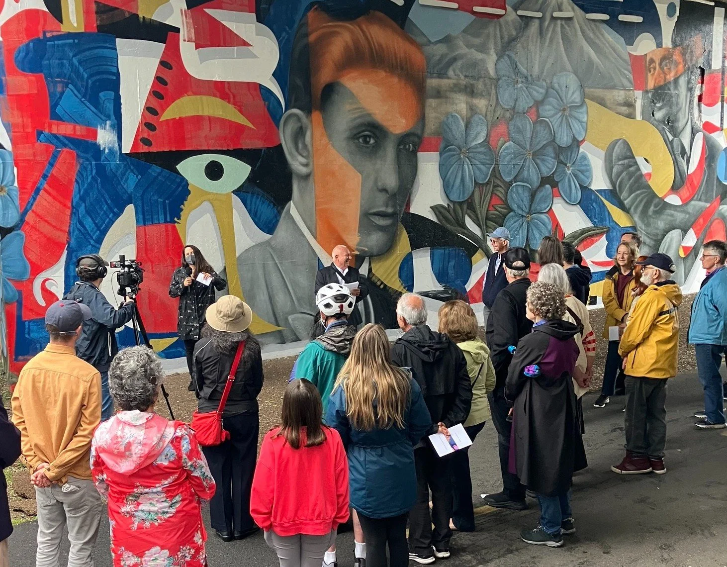 A heartfelt thank you to everyone who joined us on Tuesday, June 10 for the unveiling of the mural, Passage. A special thanks to artist Brandon Gaia Marshall for creating this powerful mural, which draws on Gorky’s vibrant palette and organic forms to honor not only his artistic legacy but also the strength and resilience of those affected by the Armenian Genocide.