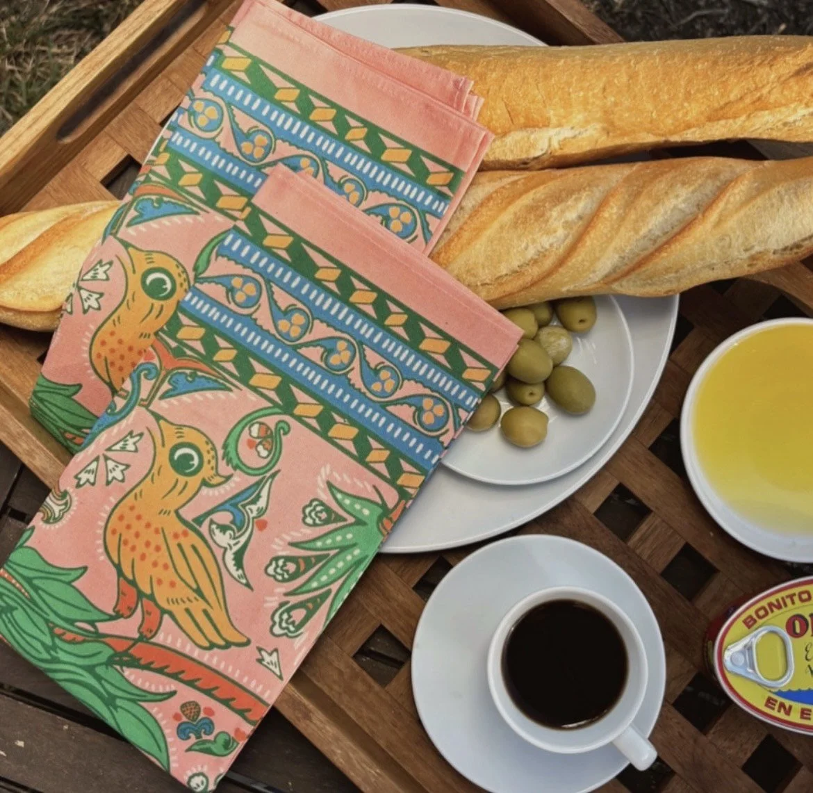 We set out to design cloth napkins that evoke the feeling of enjoying a meal outside, in the Armenian Highlands. "Arev," meaning sun in Armenian, is the brighter version of our cloth napkins. You can hear the playful sounds of the birds, taste the freshness of the greens that accompany every Armenian meal, and feel the warmth of the sun on your skin.
