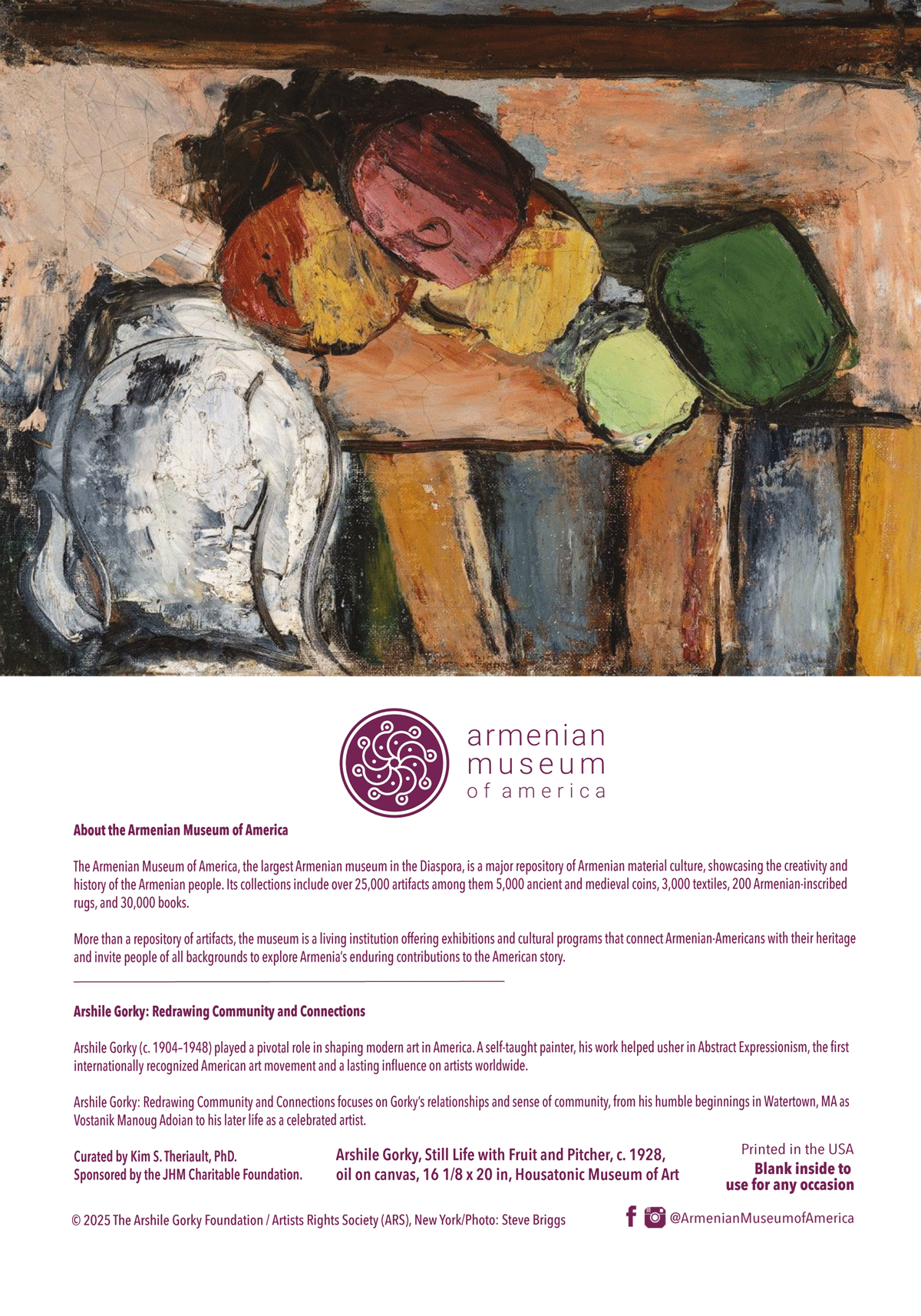 Celebrate the artistry of Arshile Gorky: Redrawing Community and Connections with exclusive gift shop items featuring designs created by Arpi Krikorian—a distinguished artist, illustrator, and storyteller known for her vibrant, expressive work that weaves together cultural heritage, personal narrative, and contemporary themes.