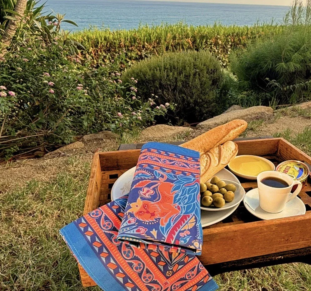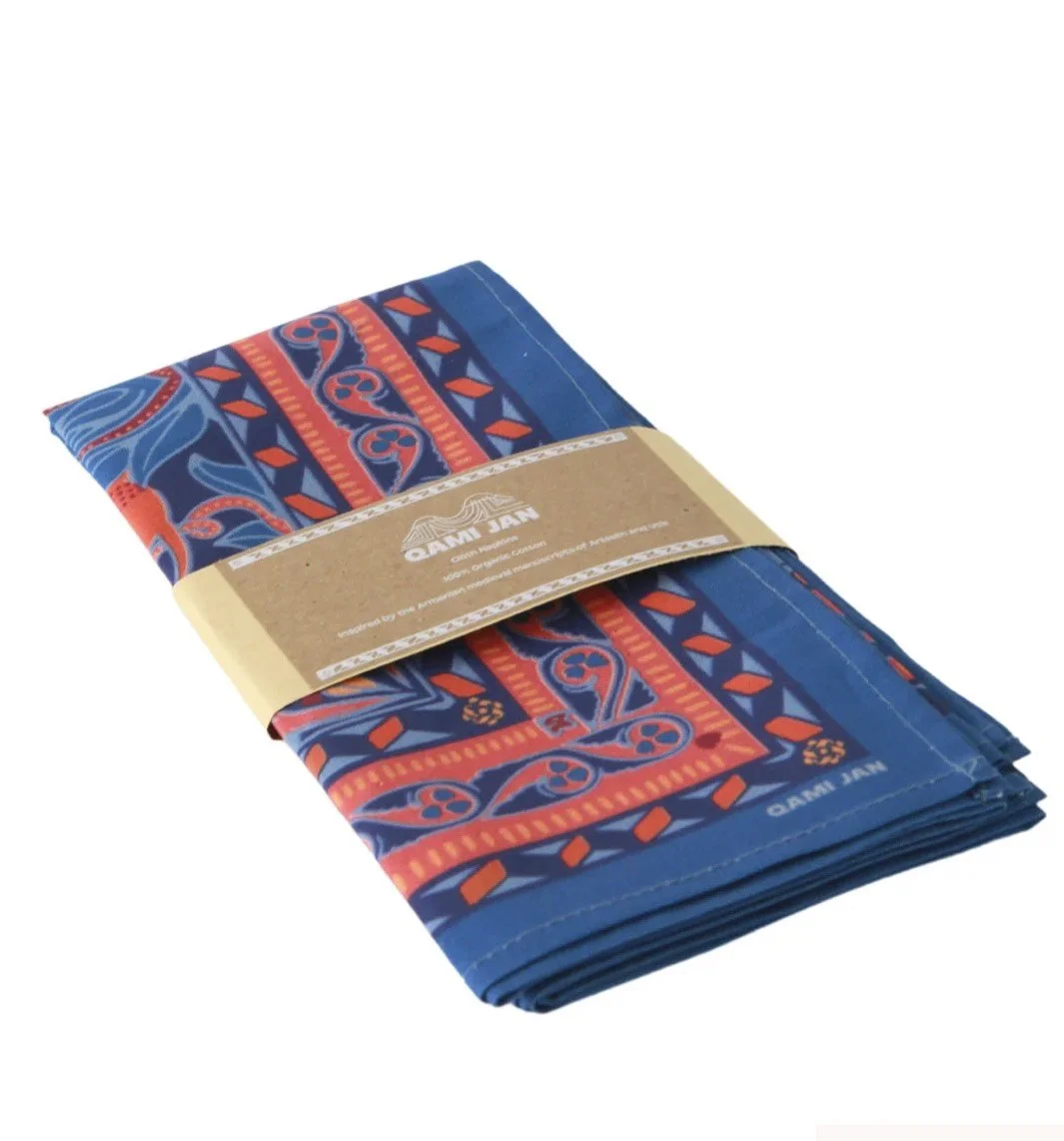 We set out to design cloth napkins that evoke the feeling of enjoying a meal outside, in the Armenian Highlands. "Arev," meaning sun in Armenian, is the brighter version of our cloth napkins. You can hear the playful sounds of the birds, taste the freshness of the greens that accompany every Armenian meal, and feel the warmth of the sun on your skin.