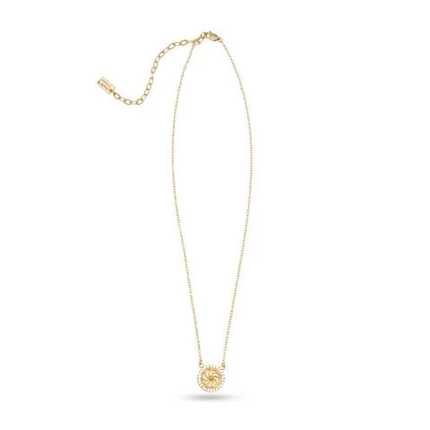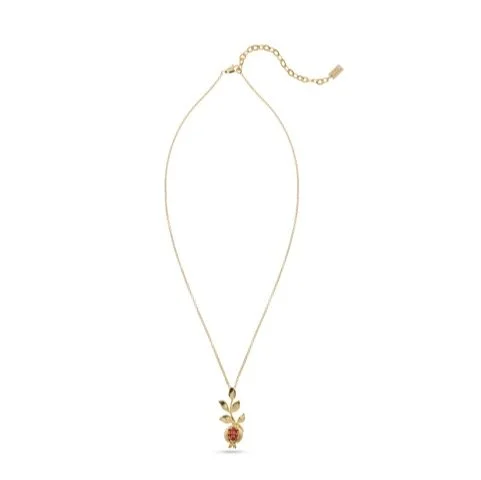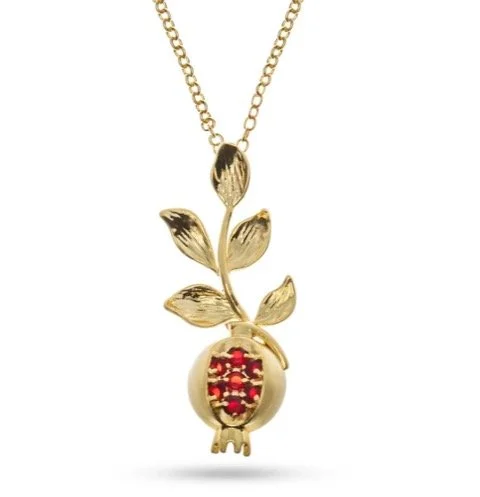 Introducing the Pamela Twig Necklace: a fresh addition to any jewelry collection. This unique necklace features a half-open pomegranate fruit with zircon gemstone seeds and a golden leaf, symbolizing the essence of life. With an adjustable 16"-18" chain and 18K gold plating, this necklace adds a touch of elegance to any outfit.